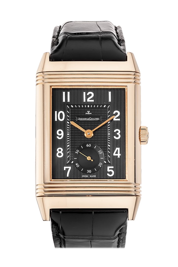 JAEGER JLC Grand Reverso 976 Black Dial Black Croc Watch 3732470
