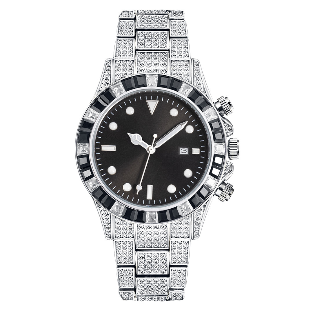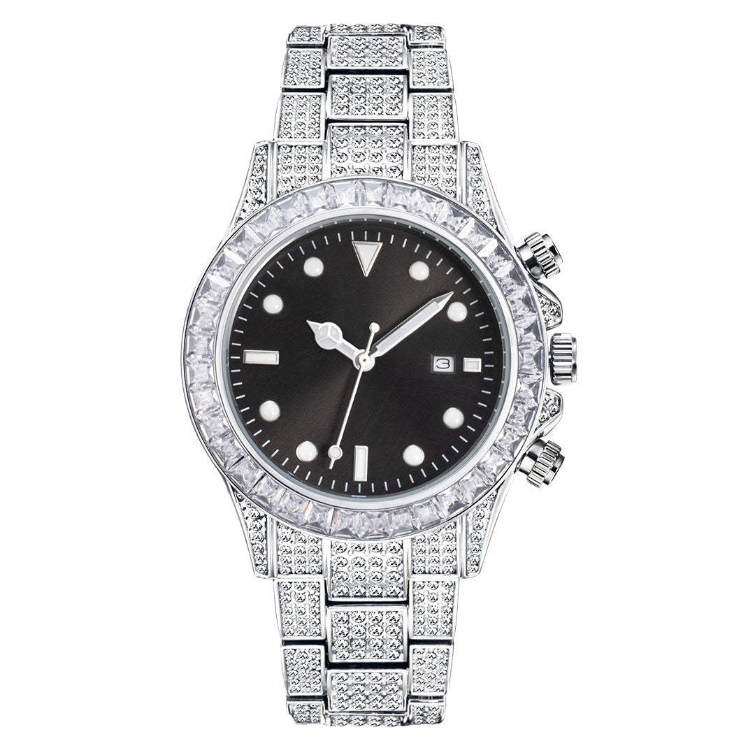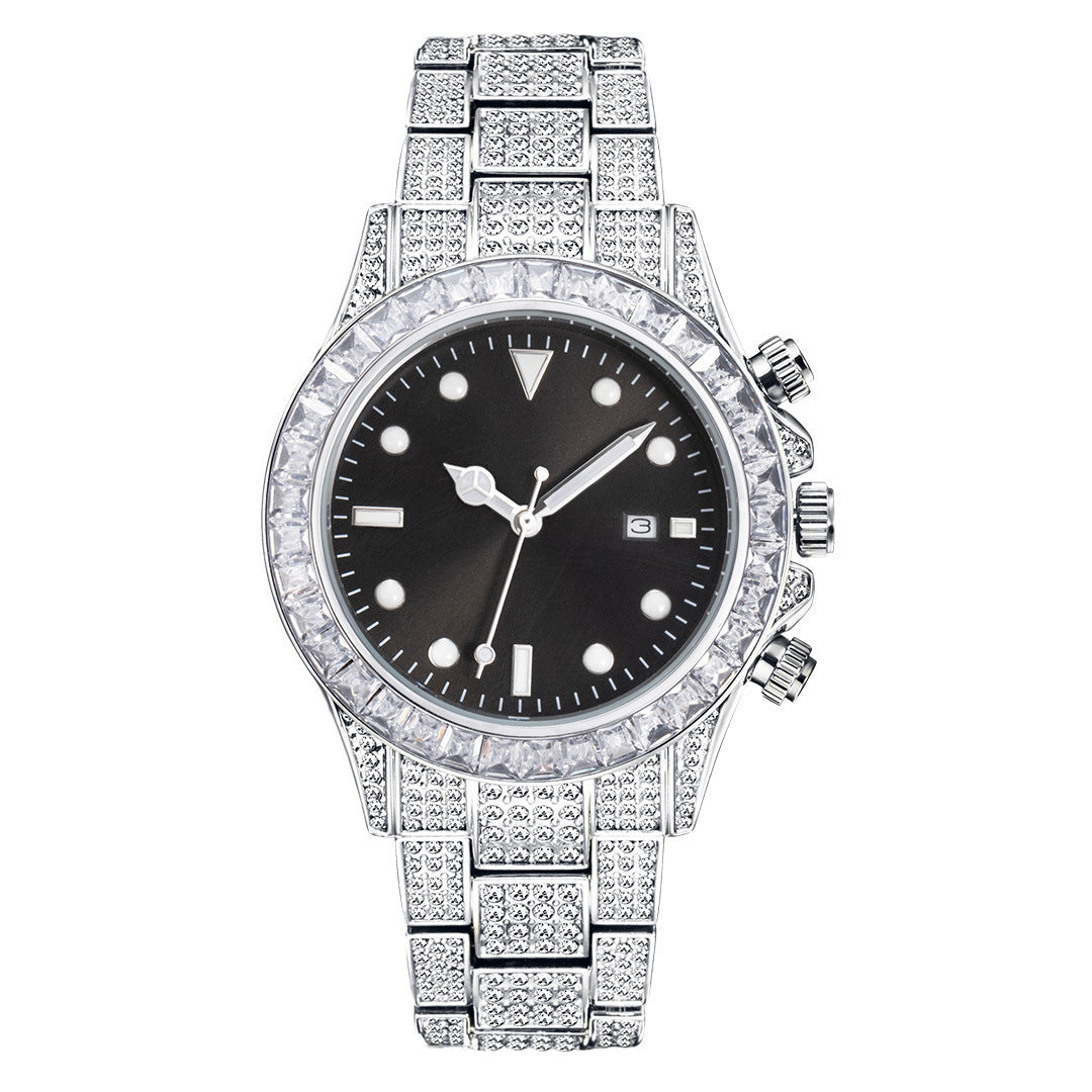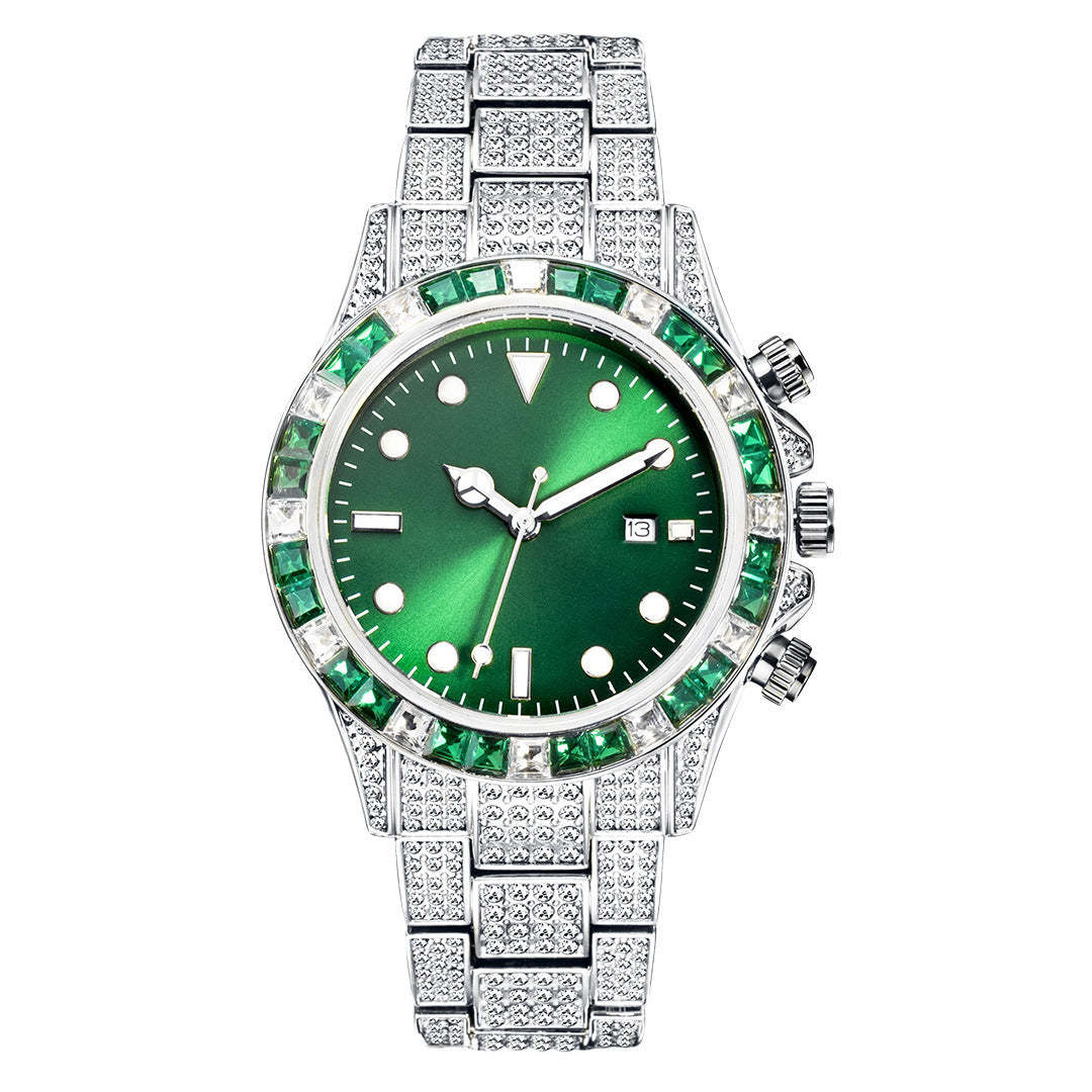 High-grade Diamond-encrusted Di Tone Full Diamond-green Disk Sun Pattern Luminous Quartz Watch