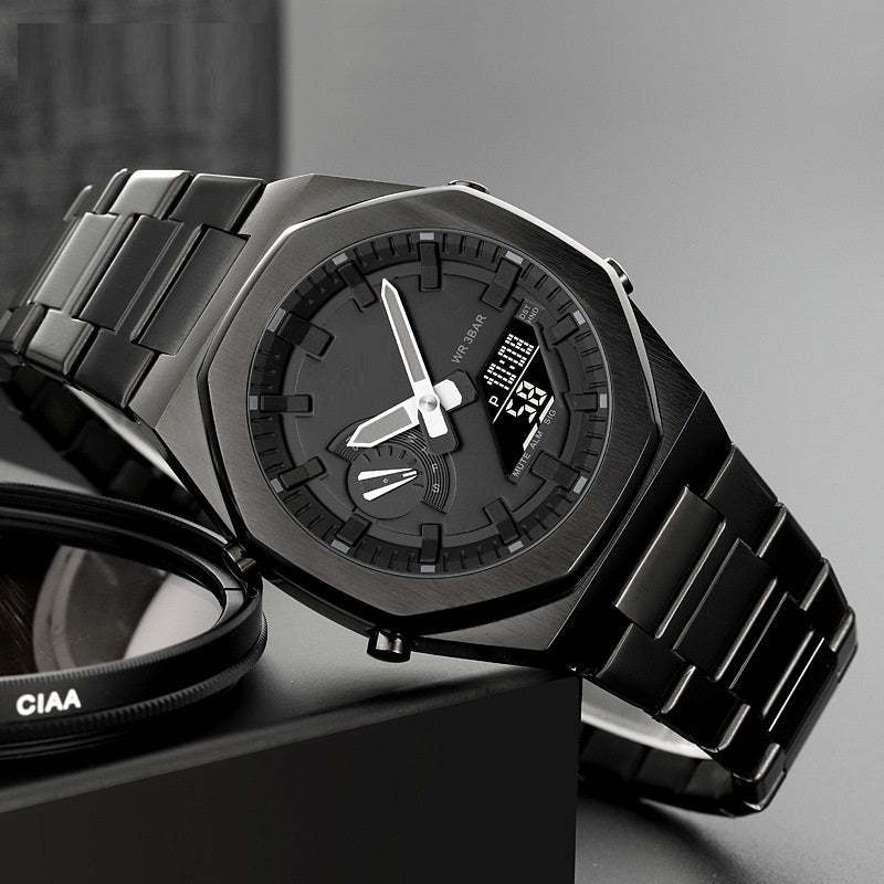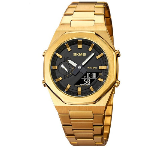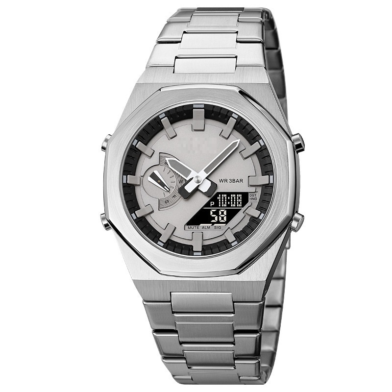 Product material: Dual-machine electronic movement, zinc alloy case, steel strap watch strap