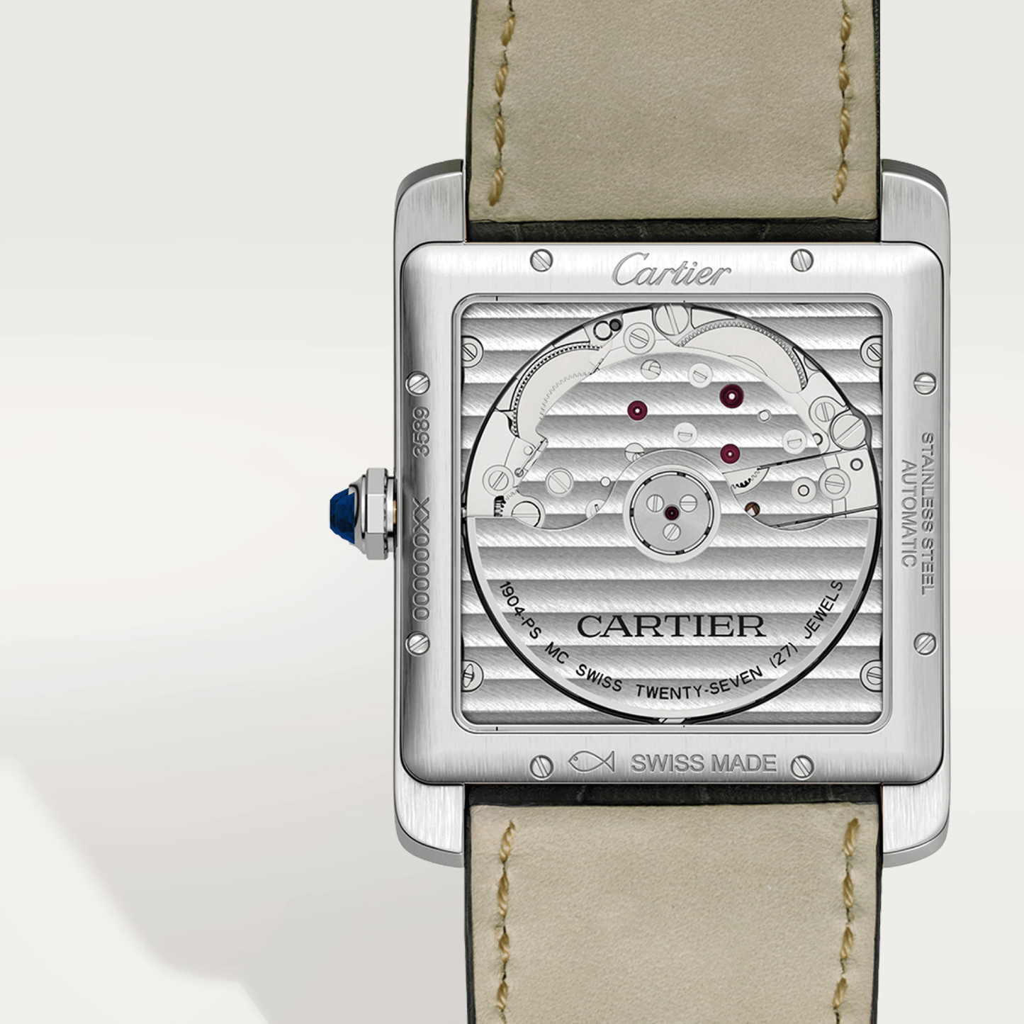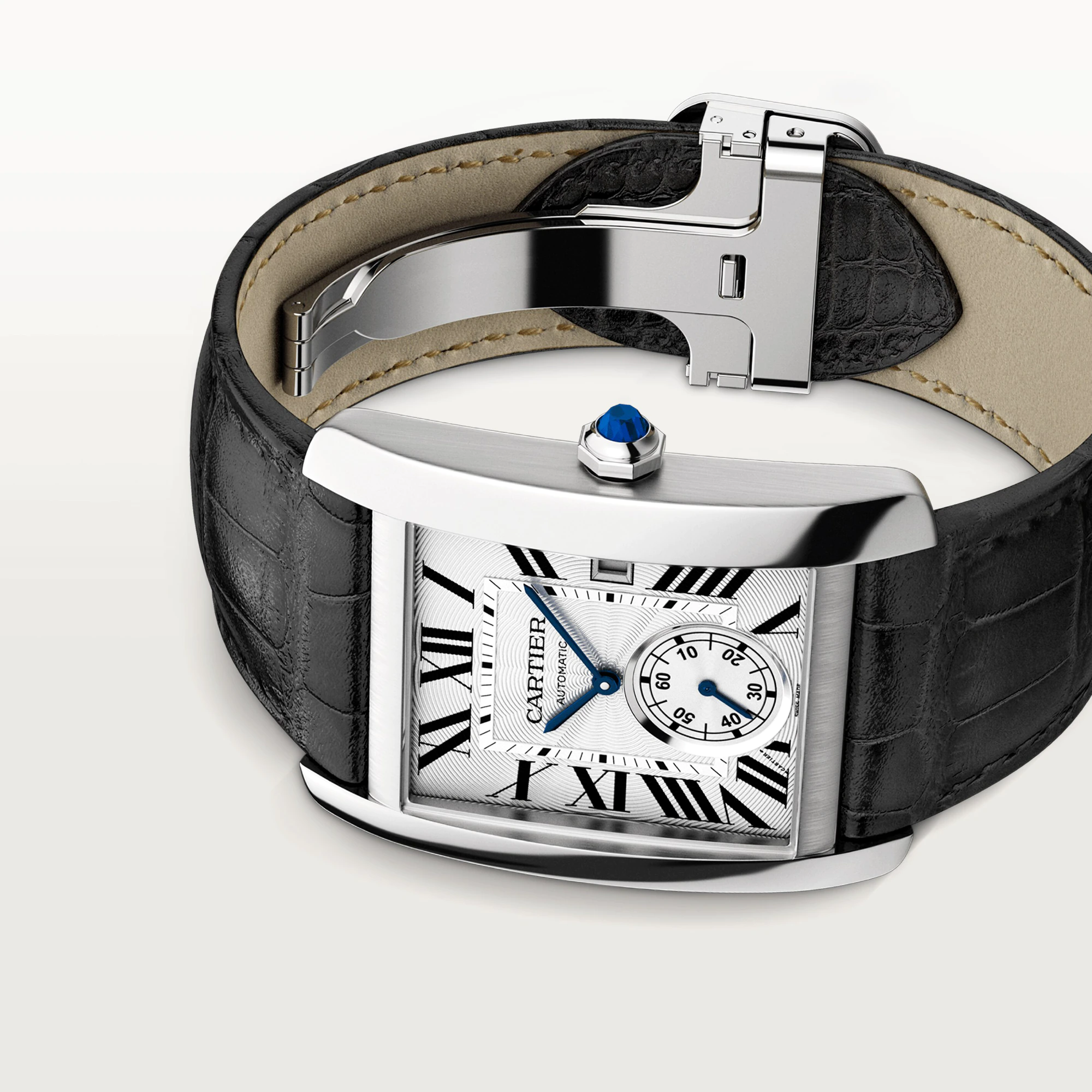W5330003 ? ? ?This watch has 34.3 mm x 44 mm Stainless steel case. Fixed Stainless steel bezel. Faceted crown in steel decorated with a synthetic spinel. Silvered flinqu�� dial with black Roman numerals. Black minute markers. sword-shaped hands in blued steel.Sub-dial of small seconds is located at 6 o��clock position. Date display at the 3 o��clock position. The watch performs following functions: hours, minutes, seconds and date. Self-winding mechanical movement is powered by a ??alibre ?1904-PS MC. Power reserve approximately 48 hours. Case Thickness �C 9.5 mm. Case back is transparent. Sapphire crystal protects front and back side of the watch. logo is under 12 o��clock. Semi-matte black alligator-skin strap with double adjustable folding buckle in steel .Water resistance up to 30 m./100 ft.